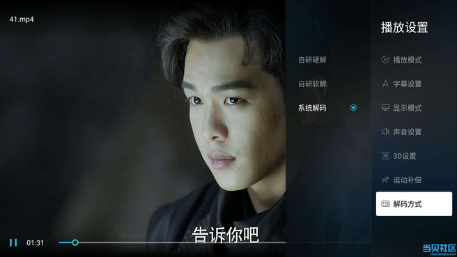 二、本地播放器功能再升级,支持更多格式 对于喜欢下载各种格式视频的用户,2.1.4.0版本有些用户反馈本地播放器功能没有以前强大,现在我们已经对本地播放器进行了优化,支持更多格式视频播放,可以根据您的喜好选择切换三种模式:自研硬解(更加注重性能,但是支持的视频格式较少)、自研软解(更加注重兼容性,可以支持更多音频)、系统解码(支持视频格式较多,且支持音频硬解码,对于接功放的可以选择此项),从此看片更加舒爽了!PS:我们还将持续优化本地播放器,以支持更多的视频,如果有出现视频无法播放的情况,请将视频提供给我们加以分析,谢谢~!